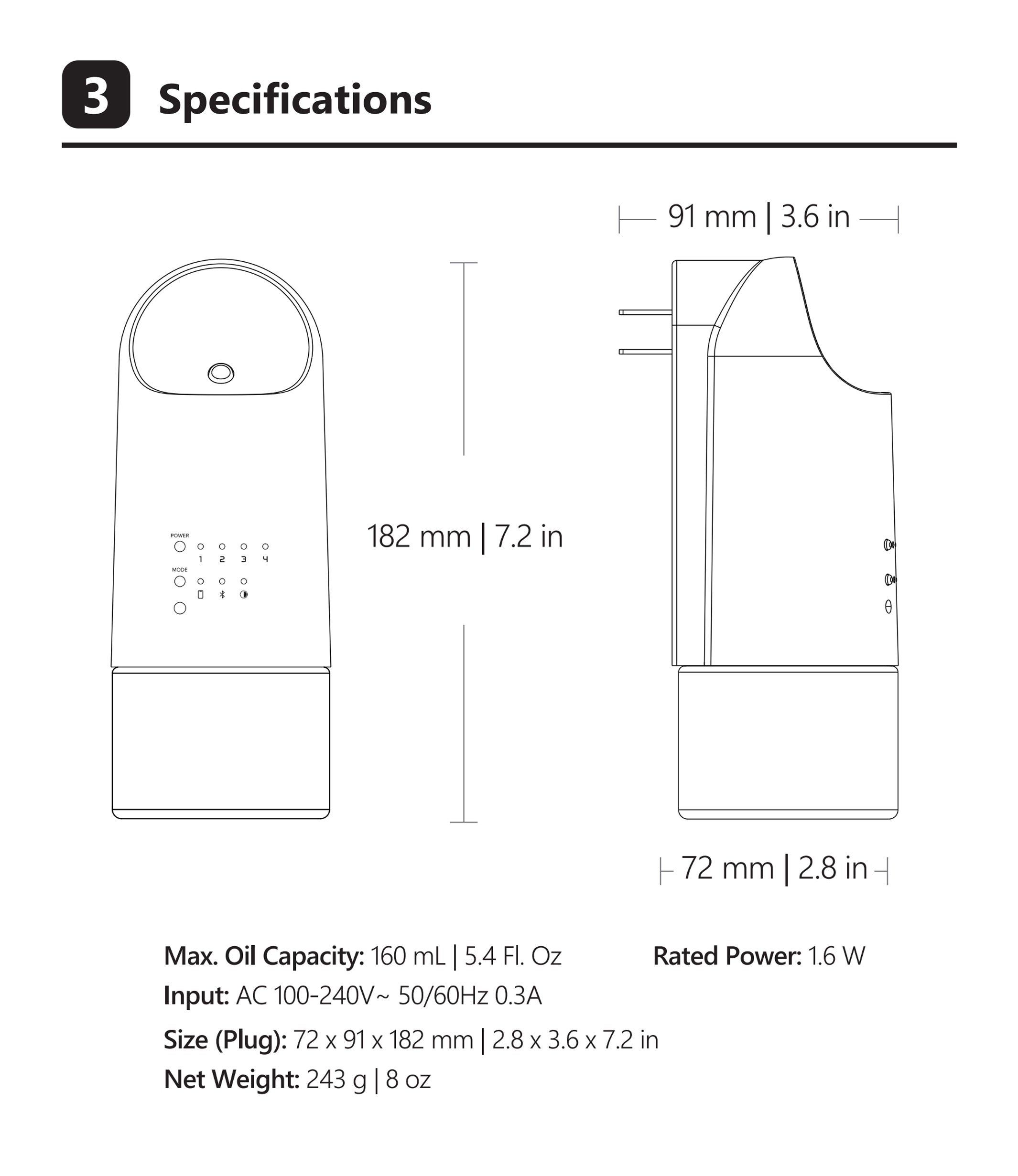 AC 100-240V ~ 50/60 Hz 0.3A
